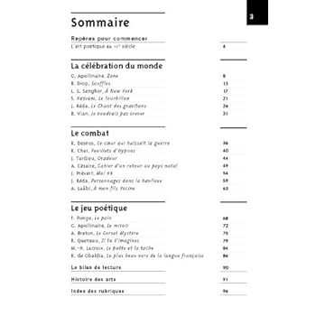 Anthologie en lien avec le thème « Visions poétique du monde » du nouveau programme de français en 3e. Présentation générale À l’écoute du monde et en quête d’une parole poétique nouvelle, les poètes des XXe et XXIe siècles expriment leurs combats, leurs révoltes mais aussi leurs espoirs face à une époque traversée par des crises et bouleversements de tous genres.Un recueil pour découvrir les différents enjeux de la poésie d’aujourd’hui. Les textes• 20 poèmes organisés autour de ces trois thèmes : 1. La célébration du monde 2. Le combat 3. Le jeu poétique • Les poètes : Apollinaire, A. Breton, R. Char, A. Césaire, R. Desnos, F. Ponge, J. Prévert, R. Queneau, L. S Senghor, J. Tardieu, B. Vian… Les compléments pédagogiques Sous la direction d’Hélène Potelet. L’ouvrage comprend : – des repères sur le contexte et les genres ; – un questionnaire pour chaque texte, avec des « petites leçons » sur les notions en jeu ; – des textes échos, pour construire une culture littéraire ; – un bilan de lecture permettant de faire la synthèse ; – un dossier « histoire des arts », avec des reproductions en couleur.